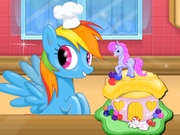 Celebrate your birthday with an awesome Rainbow Pony cake cooking game in which you will shop for the ingredients, bake the cake and also decorate it to make it seem like a castle and ponies in the front yard.